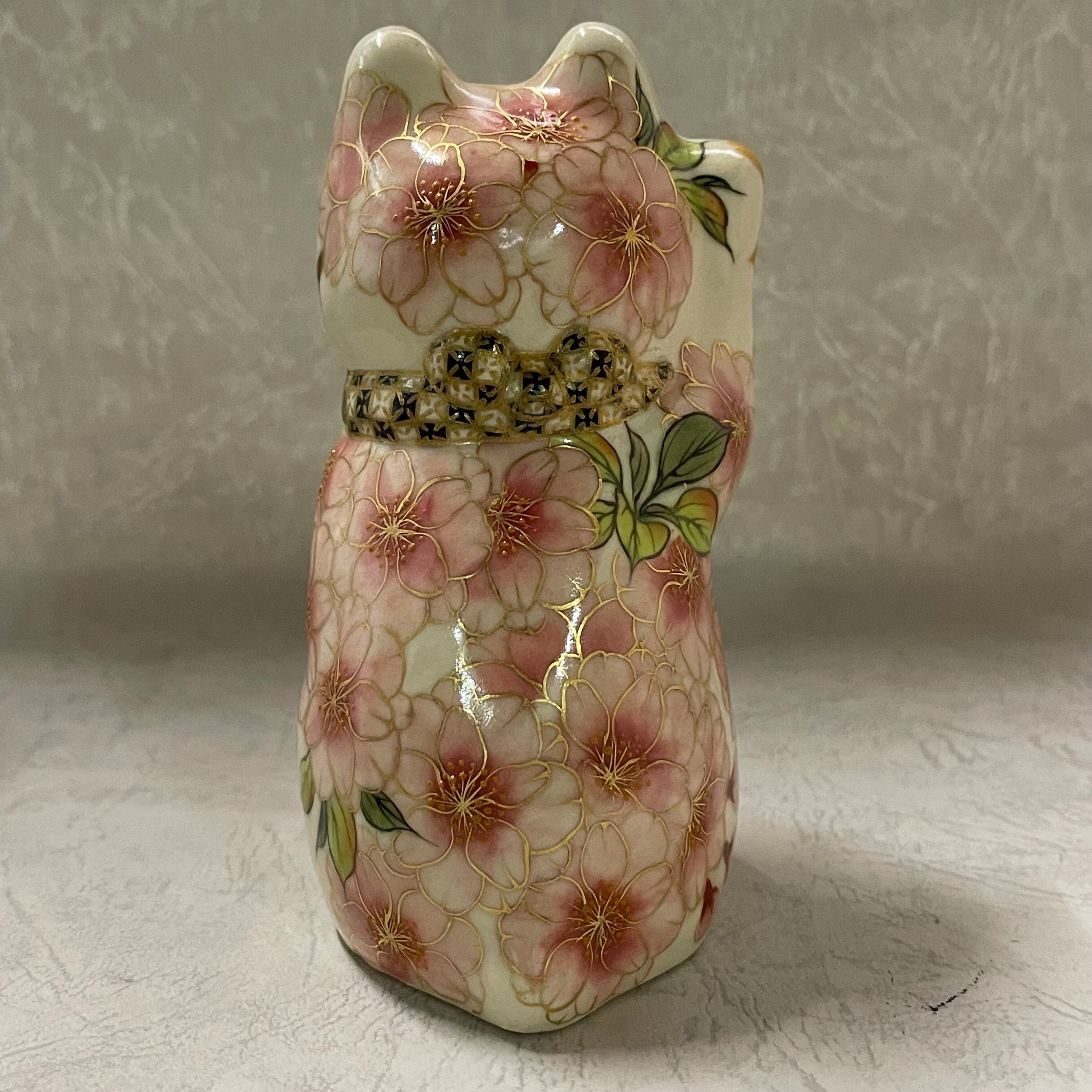 陶あん×六兵衛窯 –招き猫(大)– 色絵 八重桜