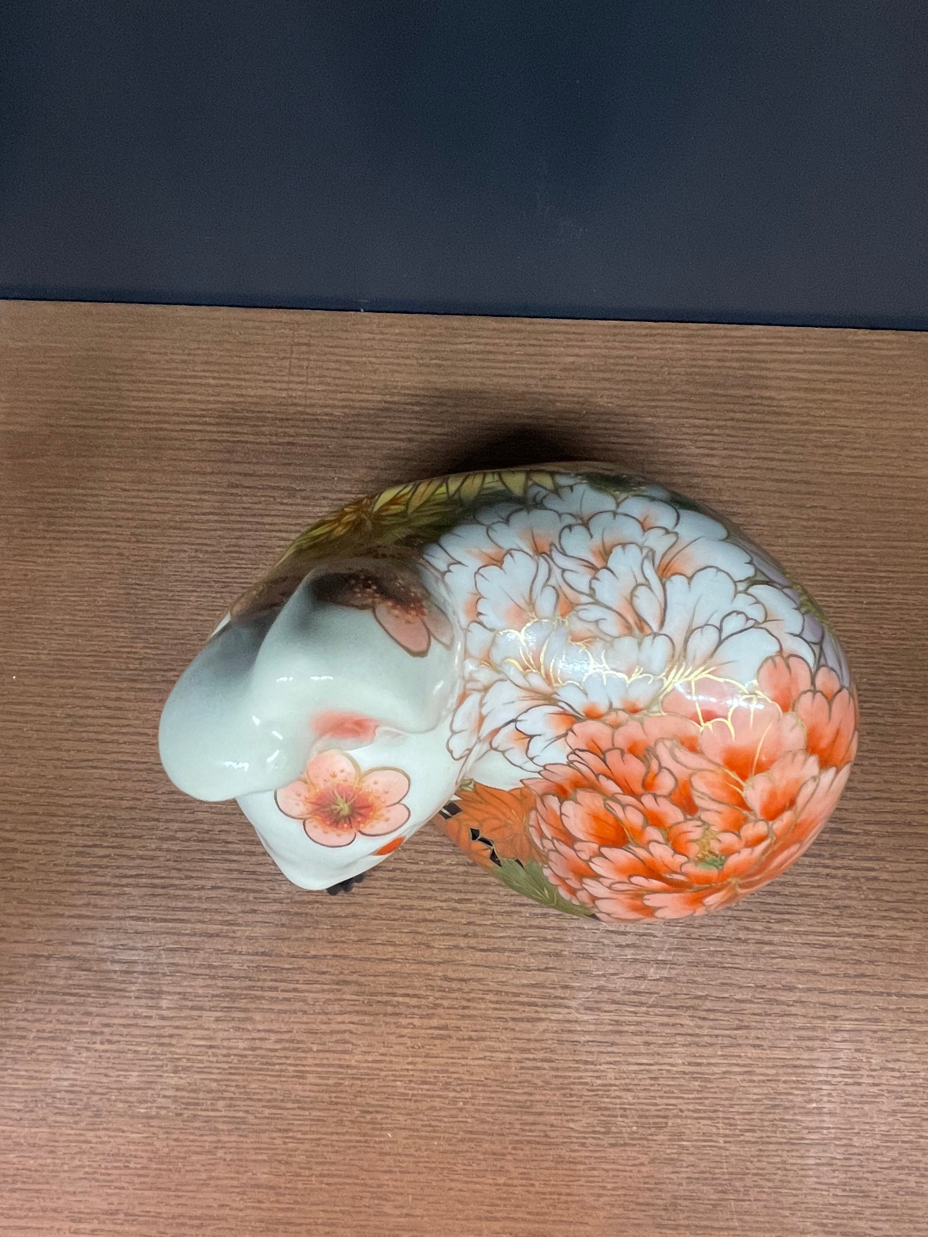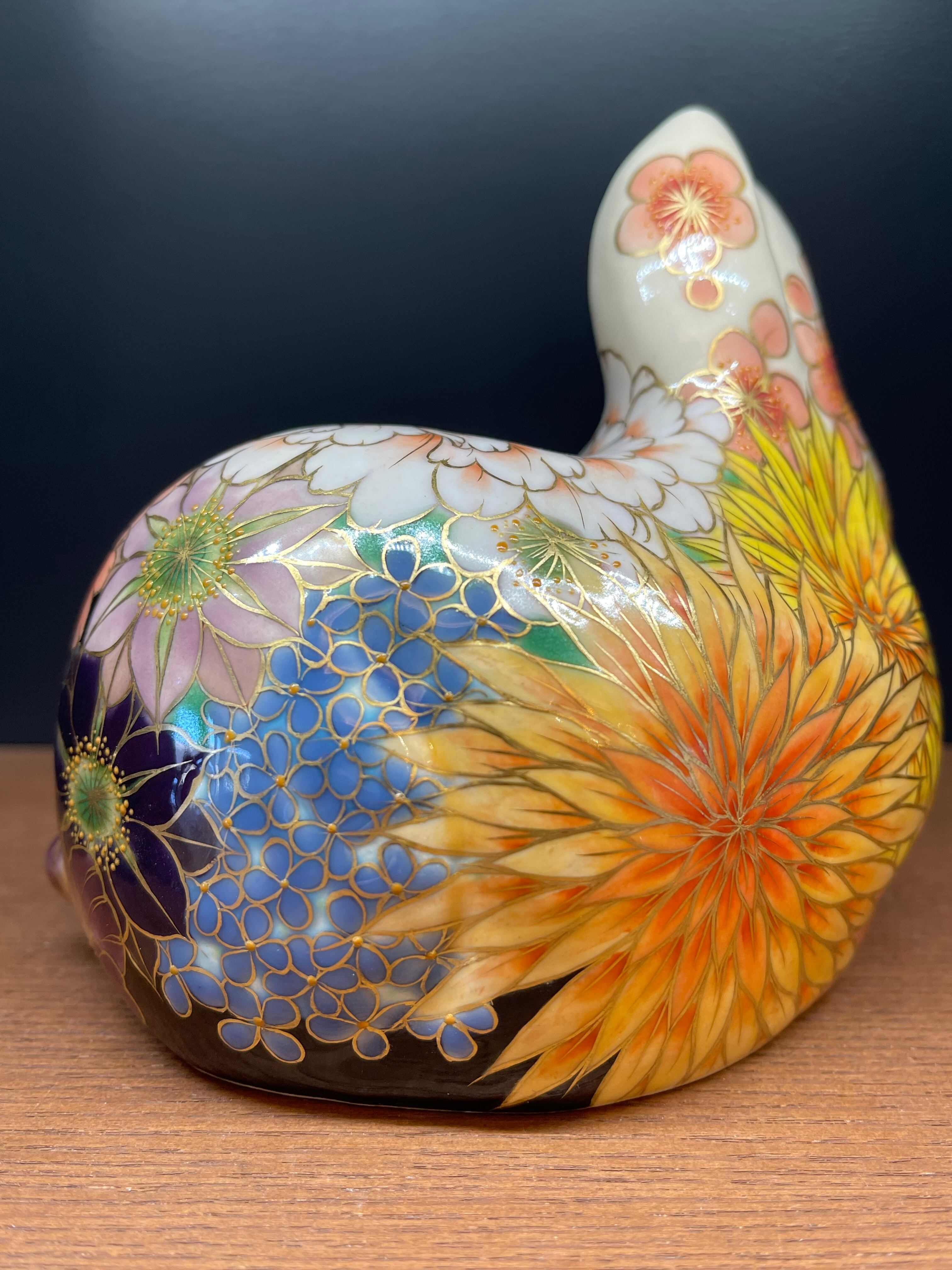 陶あん×六兵衛窯【新作】–干支うさぎ– 黒×白地 花尽くし 置物オブジェ