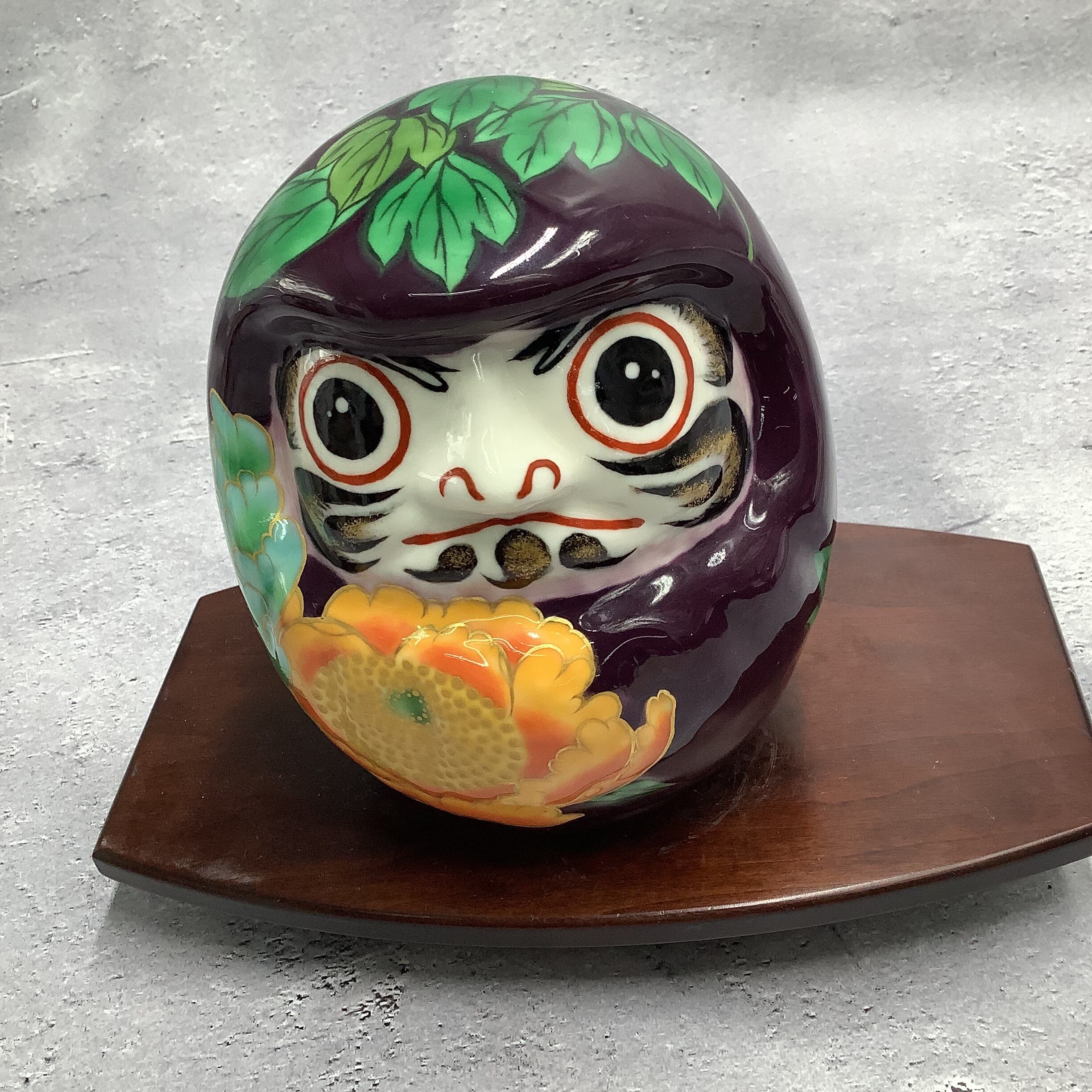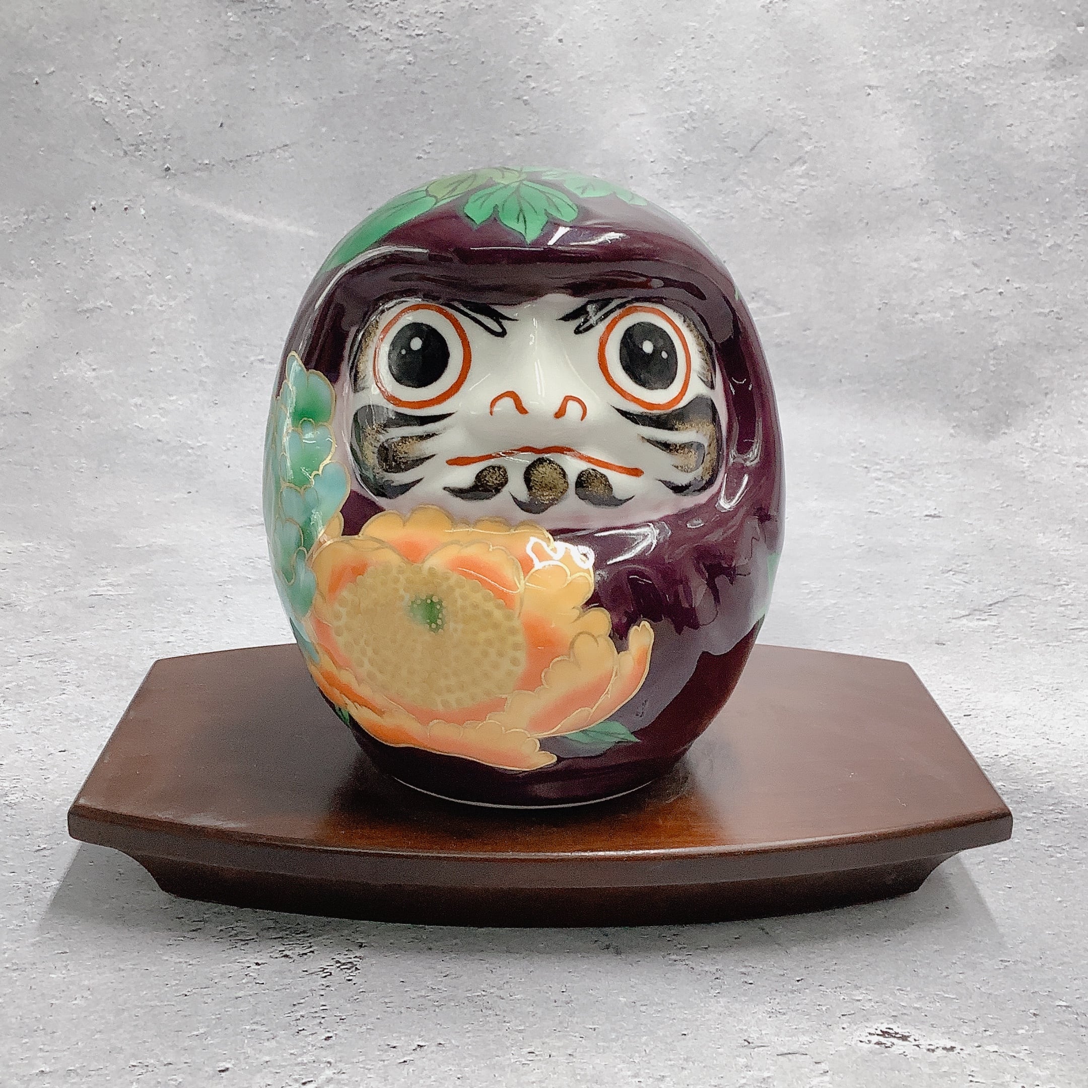 【新作】達磨 ダルマ (中 ) 紫地 若冲図 牡丹 置物オブジェ