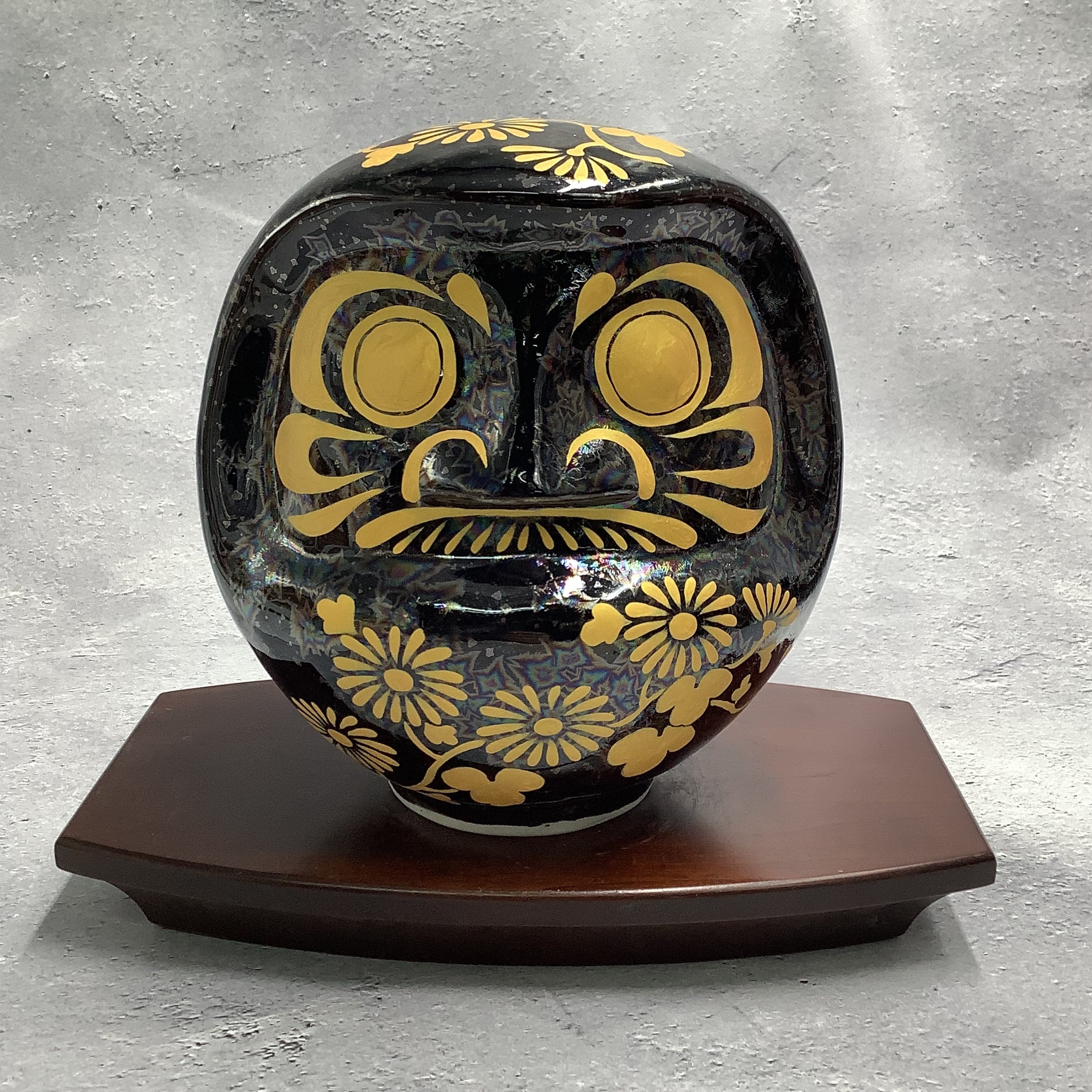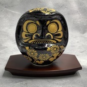 【新作】達磨 ダルマ (大)星結晶(黒)×金彩 菊 置物オブジェ
