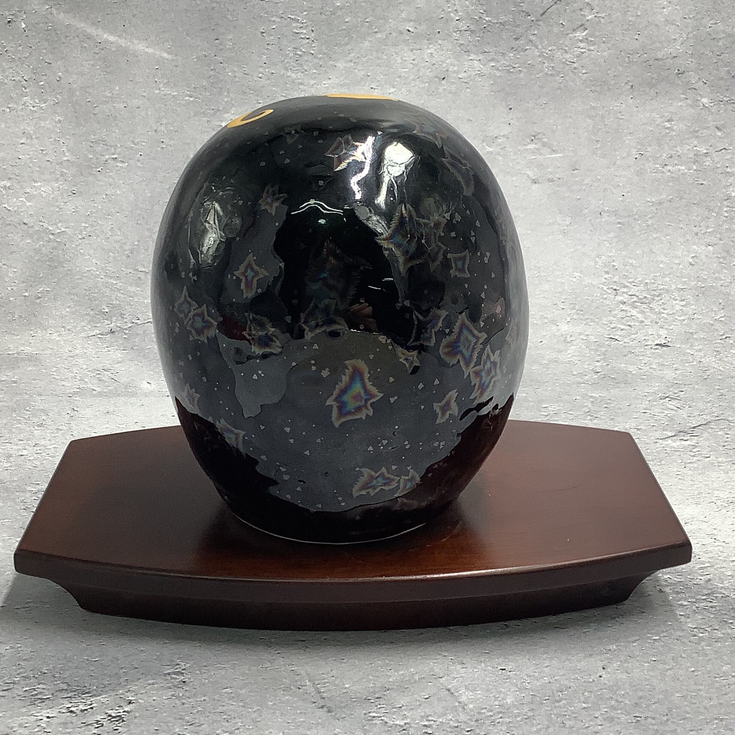 黒い釉薬の中に、きらきら光る星模様が浮かびます。