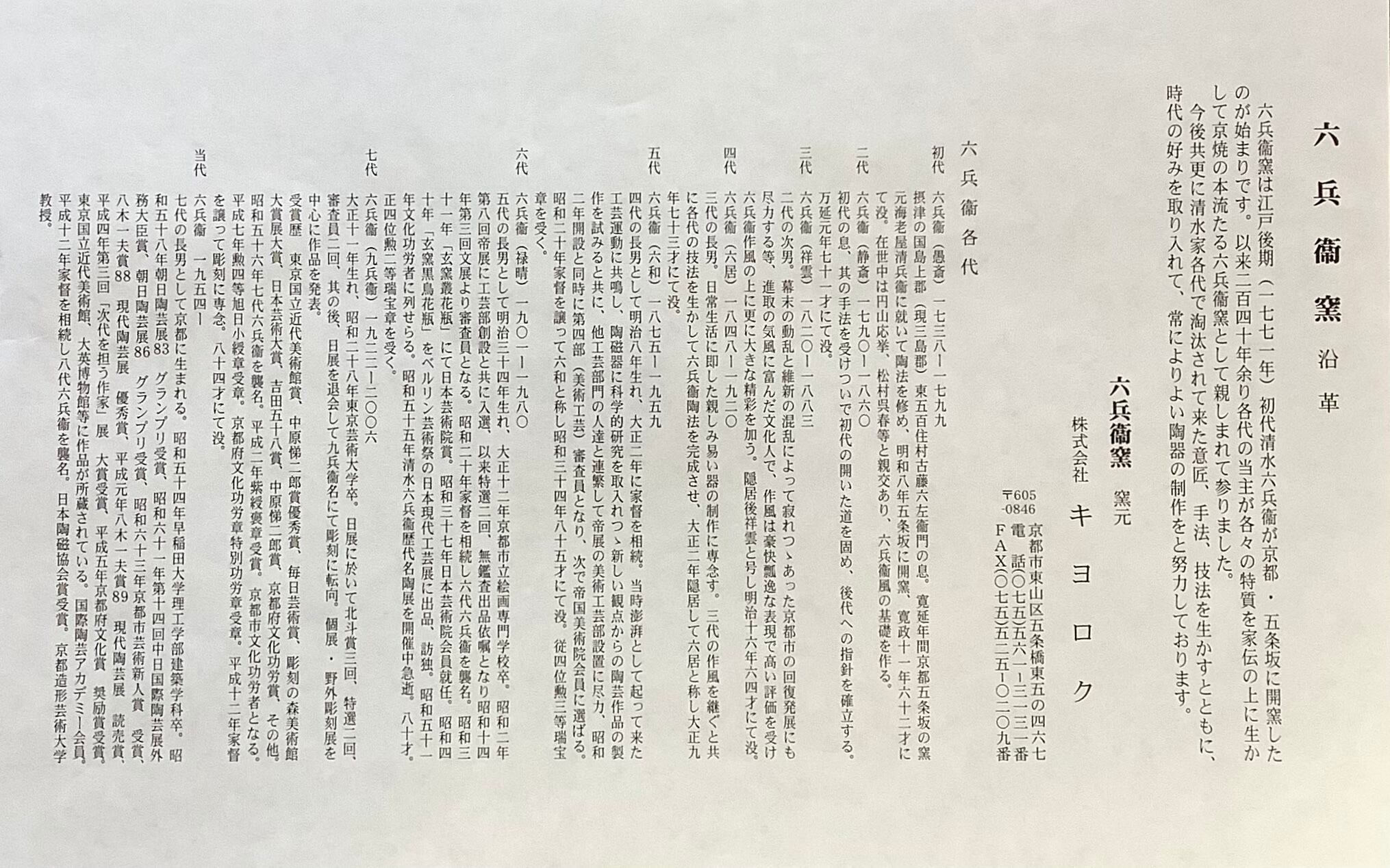 京都清水 六兵衛窯とのコラボレーションで